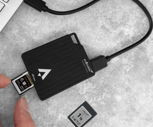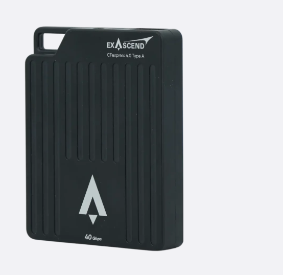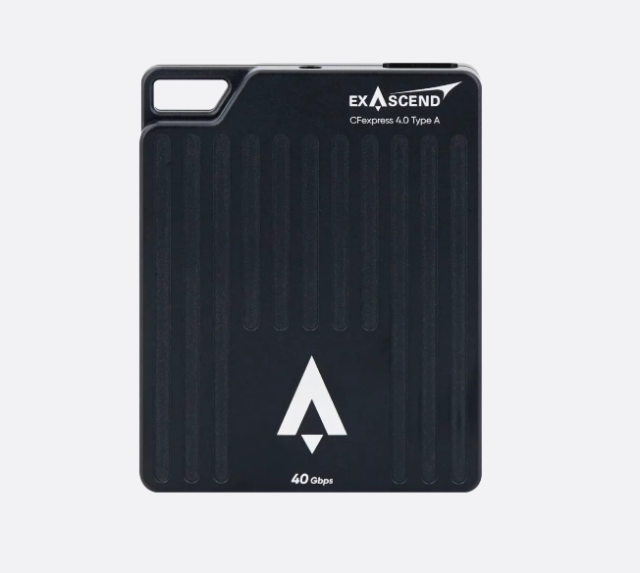 Der Exascend EXCRCFA4 CFexpress Typ A Single-Slot-Kartenleser bietet USB4-Geschwindigkeiten von bis zu 40 Gbit/s für CFexpress 4.0/2.0 Typ A-Karten und verfügt über eine Aluminium-Wärmeableitung, eine Trageschlaufe, eine Magnetbefestigung und ein kompaktes Design mit den Maßen 71,6 x 58 x 12,6 mm und einem Gewicht von 78 g.