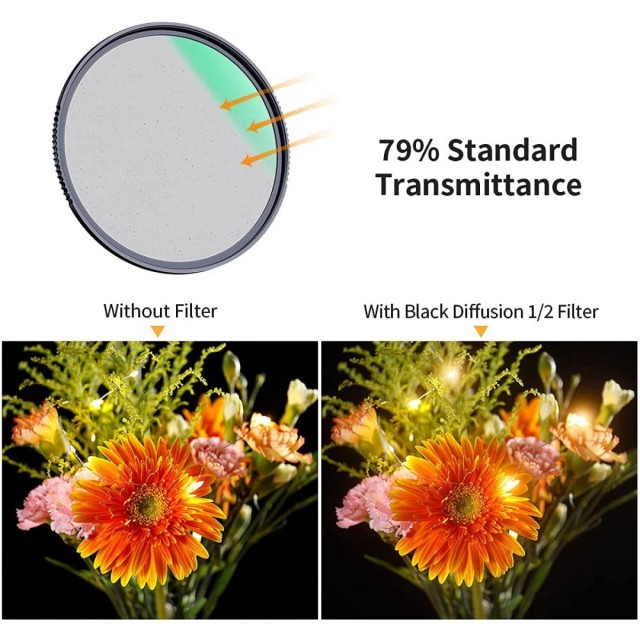 - * 【Special Filter Coating】Der K&F black diffusion soft 1 Filter mit High-Tech-Beschichtung, wasserdicht, kratzfest und ölbeständig, kein Einfluss auf die Bildqualität, leicht zu reinigen und zu tragen.