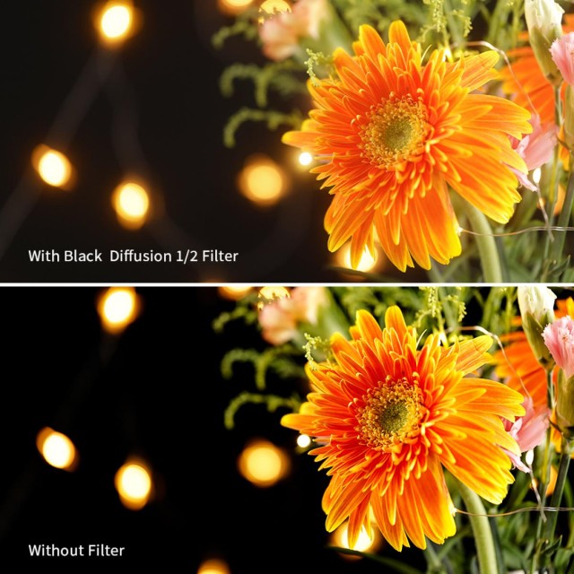 - * 【Funktion 】Der K&F Concept 1/2 schwarzer weicher Diffusionsfilter macht das Bild oder Video weich und steuert Highlight Flares, macht Haut oder Poren zarter, doppelseitige Poliertechnologie sorgt für hohe Auflösung innerhalb 550mm Brennweite. Fotografie Ausrüstung für Valentinstag schießen.