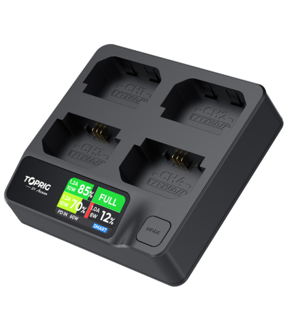 Das Accsoon TOPRIG ACC-BC-02 ist ein intelligentes 100-W-Ladegerät mit 4 Steckplätzen für Sony NP-FZ100-Akkus, das in nur 1,5 Stunden eine Ladung von bis zu 95 % liefert. Mit USB-C PD 3.0-Eingang, intelligenten Lademodi und einem integrierten Farbdisplay ist es für eine schnelle, sichere und professionelle Akkuverwaltung ausgelegt.
