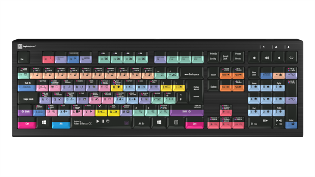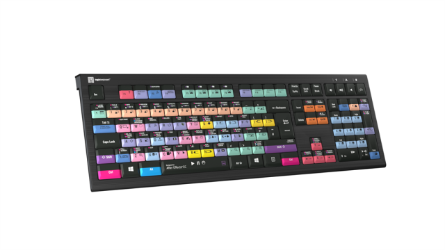 Die Logickeyboard-Tastatur für Adobe After Effect verfügt über alle Buchstaben, Zahlen und Symbole, die auch auf einer herkömmlichen Tastatur zu finden sind, und kann diese einfach ersetzen. Die Tastatur ist einfach anzuschließen und erfordert keine Software-Installation.