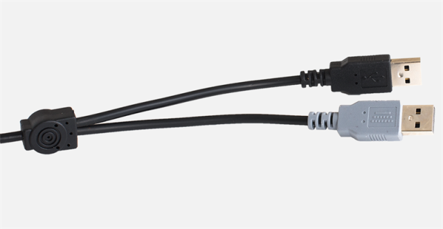 Die ASTRA 2-Tastatur wird mit zwei USB-Kabeln geliefert: einem grauen für die Tastatur selbst und einem schwarzen für den USB-Hub, um Probleme bei Installationen zu vermeiden, die einen KVM-Extender erfordern.