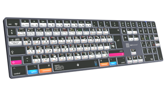 Das Adobe Photographer Shortcut Keyboard ist eine 2-in-1-Tastatur. Es funktioniert mit zwei der beliebtesten Adobe-Anwendungen für Fotografen - Photoshop CC und Lightroom CC - und bietet Ihnen mehr als 190 Tastenkombinationen in einer einzigen Tastatur. Mit dem Adobe Photographer Keyboard können Sie ganz einfach zwischen den Anwendungen wechseln und haben trotzdem alle wichtigen Shortcuts direkt zur Hand. Dieses Logickeyboard ist Ihre erste Wahl, wenn Sie mit Bildbearbeitung in Adobe arbeiten. Die auf den Tasten beschrifteten Shortcut-Befehle und ihre farbkodierten Definitionen machen Sie im Handumdrehen zum Meister der Bearbeitung. Das Logickeyboard ist ideal für Fotografen und alle anderen, die fleißig mit Fotografie und Bildbearbeitung arbeiten.