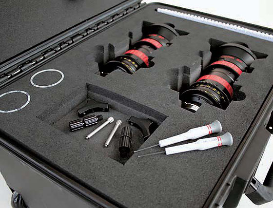 Pár objektívov Optimo DP 16-42 a 30-80 s podobnými optickými špecifikáciami a zladeným ostrením a zoom-om. Súčasťou je špeciálny transportný kufor.