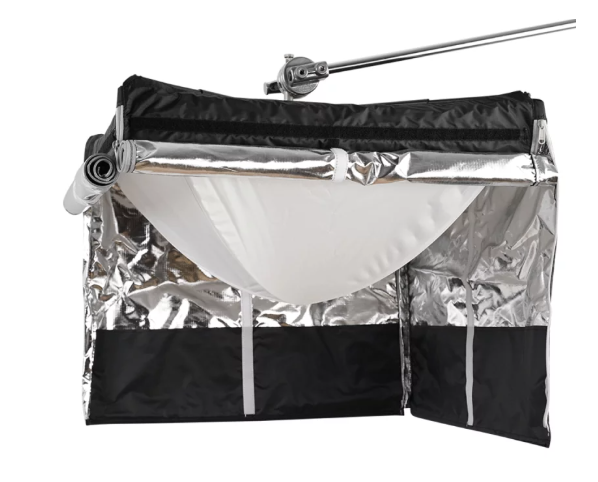Der abnehmbare Lichtschutz mit Klettverschluss und reflektierender Innenseite hilft, Streulicht zu vermeiden, sodass Sie Ihre Beleuchtung präziser steuern können. Der im Lieferumfang enthaltene 2,5-Stufen-Diffusor mildert das Licht und sorgt für einen weichen, schmeichelhaften Look ohne harte Schatten oder Hotspots. Ob im Studio oder vor Ort – dank der schnellen Montage und Demontage ist die Amaran Lantern eine einfache und effiziente Lösung, um Ihre Beleuchtung zu verbessern.