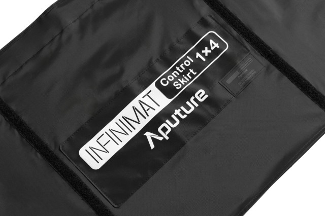 Der Aputure INFINIMAT Control Skirt 1x4 ist ein Lichtschirm (schwarzer Rock), der seitlichen Lichtaustritt verhindert. Das gesamte Licht des Leuchtpaneels wird durch die Softbox geleitet und auf das zu beleuchtende Objekt gelenkt. Der Control Skirt wird an der INFINIMAT 1x4 Softbox befestigt.