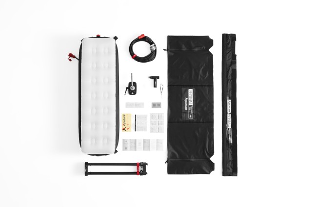 Das INFINIMAT-System von Aputure zeichnet sich durch seine Kompaktheit und Praktikabilität aus. Die aufblasbare Softbox streut das Licht sehr gut und macht es deutlich weicher, ist aber deutlich kleiner als klassische Diffusorlösungen. Zur Aufbewahrung wird die INFINIMAT-Softbox einfach entleert. Die Packung enthält umfangreiches Zubehör wie ein Lichtgitter und einen Lichtschirm.