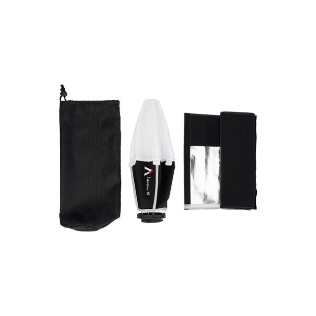 Lantern 30 ist eine kugelförmige Mini-Softbox mit einem Diffusor mit einem Durchmesser von 30 cm. Sie hat eine Mini ProLock-Halterung für den Anschluss an den STORM 80c. Lantern 30 verfügt über eine verstellbare Blende, die eine kontrollierte Lichtverteilung ermöglicht.