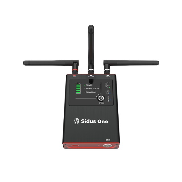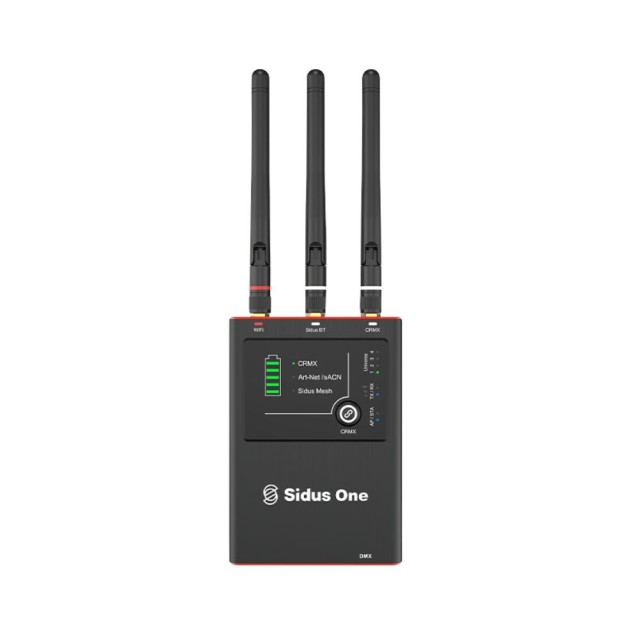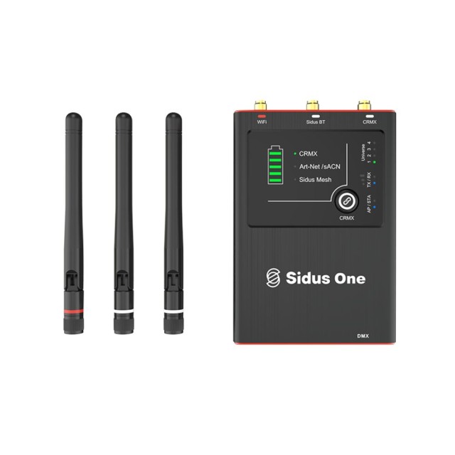 Der Sidus One Transceiver ist kompakt und erweiterbar. Verbinden Sie ihn mit bis zu drei anderen Sidus One Transceivern, um vier Universen zu schaffen, die anspruchsvollere DMX-Konfigurationen für größere Projekte oder komplexere Beleuchtungs-Setups abdecken. Sidus One ist klein aber fein. Er überträgt CRMX bis zu 300m, Sidus Bluetooth bis zu 180m und 5GHz Wifi bis zu 120m.
