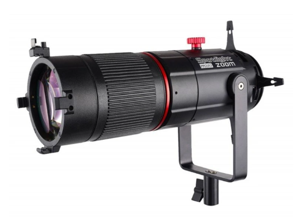 Der Spotlight Mini Zoom ist leicht und kompakt und eignet sich daher sowohl für Außenaufnahmen als auch für Studioaufnahmen. Eine mit einer Rosette verschließbare Halterung sorgt für eine sichere Befestigung und präzise Winkeleinstellung an Stativen oder Gerüsten. Dieses Modul ist vollständig kompatibel mit den LED-Leuchten Aputure LS 60d und LS 60x und lässt sich nahtlos in bestehende Beleuchtungskonfigurationen integrieren, sodass Kameraleute, Beleuchter und Lichtdesigner eine flexible, professionelle Projektionslösung erhalten.