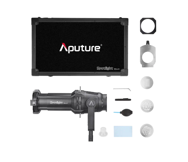 Das Aputure Spotlight Mount Set 36° (AP-SMS36) wurde für professionelle Beleuchtungsanwendungen entwickelt, bei denen Präzision und Flexibilität unerlässlich sind. Mit einem Abstrahlwinkel von 36° ermöglicht diese Scheinwerferhalterung die Erzeugung scharfer Kanten, detaillierter Muster und einer kontrollierten Lichtverteilung sowohl für die Fotografie als auch für die Videografie.