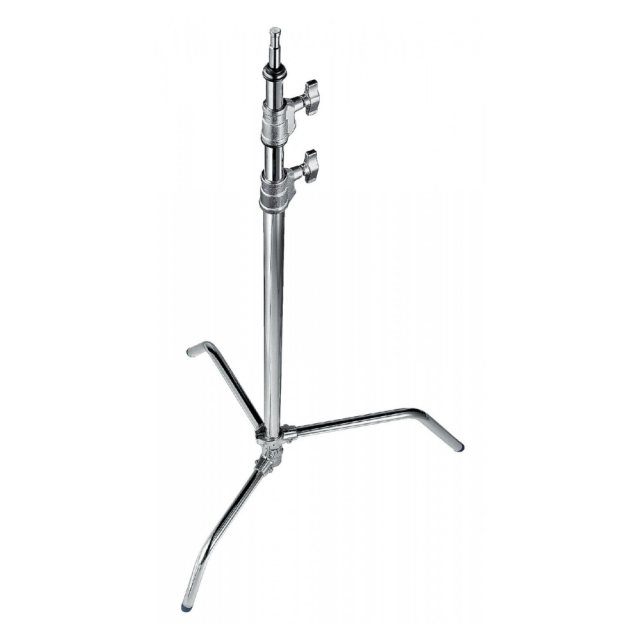 Das Stativ mit Turtle Base besteht aus einer verchromten Stahlkonstruktion, 3 Sektionen und 2 Tragegurten. Ein Schiebebein ist ebenfalls enthalten, um das Stativ auf unebenen Oberflächen stabil zu halten. Dieses Stativ trägt eine maximale Last von 10 kg und erreicht eine maximale Höhe von 3,28 m. Das Stativ ist auch in Schwarz erhältlich.