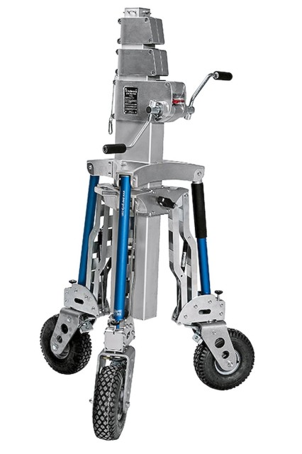 Schnell reagierende Gasdruckkolben sorgen für einen reibungslosen Betrieb, während die mit Schaumstoff gefüllten Rollen eine stabile und komfortable Bewegung auf einer Vielzahl von Oberflächen ermöglichen. Eine integrierte Sicherheitskupplung sorgt für zusätzliche Sicherheit beim Absenken und Abbauen und verhindert ein plötzliches Herunterfallen unter schwerer Last. Bei unebenem Gelände kann ein Bein unabhängig nivelliert werden, und eine integrierte Wasserwaage hilft dabei, die korrekte Aufstellung und die richtige Gewichtsverteilung zu überprüfen. Der Long John Silver Jr. wurde für Zuverlässigkeit und Sicherheit entwickelt und ist eine bewährte Lösung für hochwertige Film-, Fernseh- und Werbeproduktionen.