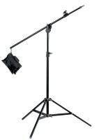 Ausgestattet mit schaumgefüllten Bremsrädern gewährleistet der Long John Silver Stand eine reibungslose und stabile Bewegung auch auf unebenem oder unebenem Gelände. Darüber hinaus ermöglichen drei Nivellierfüße eine präzise Einstellung auf unebenen Oberflächen, während der breite Sockeldurchmesser von 240 cm für hervorragende Stabilität sorgt. Eine standardmäßige 1-1/8"-Aufnahme (28 mm) gewährleistet die Kompatibilität mit professionellen Beleuchtungsgeräten und Zubehör.