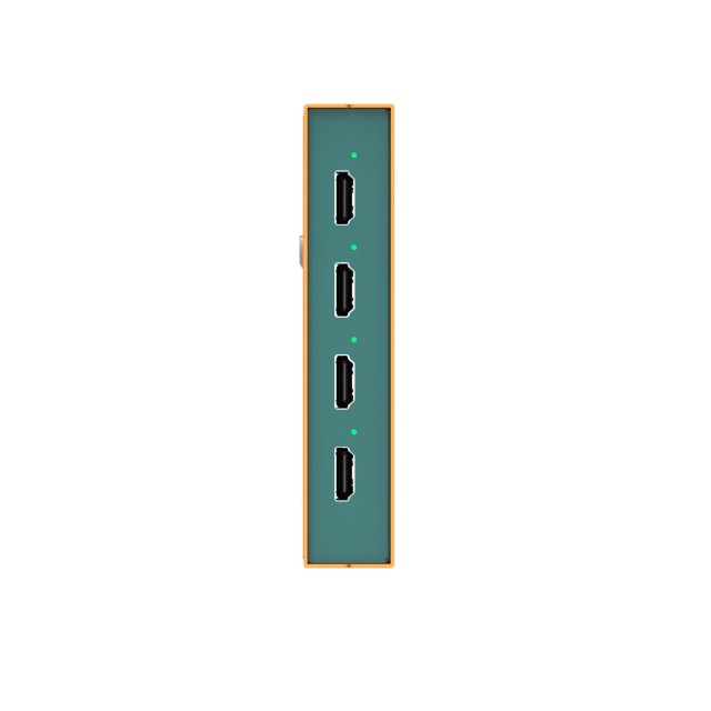 1×4 4K60 HDMI-Verteilerverstärker mit integriertem Display. USB-C/DC-Netzteil, optionale Rack-Montage.