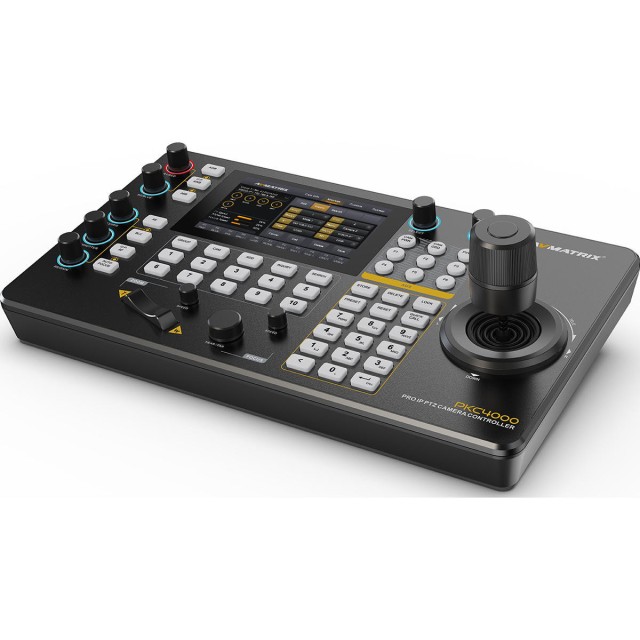 Optimieren Sie Ihre Multi-Kamera-Konfiguration mit dem AVMatrix PKC4000. Mit einem 5-Zoll-Touchscreen, einem 4D-Joystick und Unterstützung für Visca-, Pelco P&D-, Onvif- und IP-Protokolle verwaltet dieser Controller bis zu 100 PTZ-Kameras mit Echtzeit-Videodekodierung. Steuern Sie Belichtung, Blende, Fokus und Bewegung mühelos. Er wird über PoE oder 12 V Gleichstrom betrieben und eignet sich ideal für Studios, Live-Events und Broadcast-Umgebungen.
