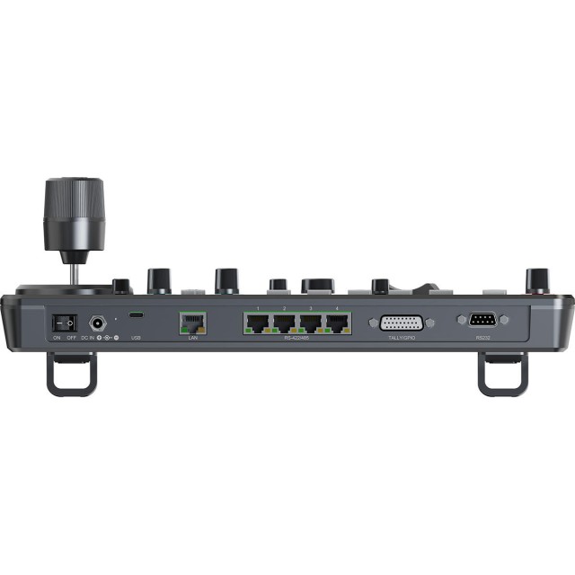 Der Touchscreen-Kamera-Controller bietet eine einfache und intuitive Bedienung mit einem 5-Zoll-Touchscreen und einem 4D-Joystick. Er unterstützt die Protokolle Visca, Visca Over IP, Pelco P&D und Onvif und ermöglicht die Steuerung über IP-, RS-422-, RS-485- und RS-232-Schnittstellen. Mit Echtzeit-Videoüberwachung, automatischer IP-Adressvergabe und Verwaltung von bis zu 100 IP-Kameras sorgt er für einen effizienten Betrieb der PTZ-Kameras. Die Unterstützung der Videodekodierung ermöglicht die Echtzeit-Signalüberwachung und bietet Benutzern Live-Feedback für eine genaue Einrichtung. Die automatische IP-Adressvergabe vereinfacht den Einrichtungsprozess, während die Fähigkeit des Controllers, bis zu 100 IP-Kameras in einem einzigen Netzwerk zu verwalten, ihn für Großproduktionen geeignet macht. Darüber hinaus verfügt das Bedienfeld über sechs vom Benutzer zuweisbare Tasten für den schnellen Zugriff auf Grundfunktionen und bietet spezielle Bedienelemente zum Einstellen von Belichtung, Blende, Fokus, Schwenken, Neigen und mehr. Das Gerät kann über PoE oder eine 12-V-Gleichstromversorgung mit Strom versorgt werden, und für diejenigen, die erweiterte IP-Video-Workflows benötigen, ist eine NDI-Version erhältlich.