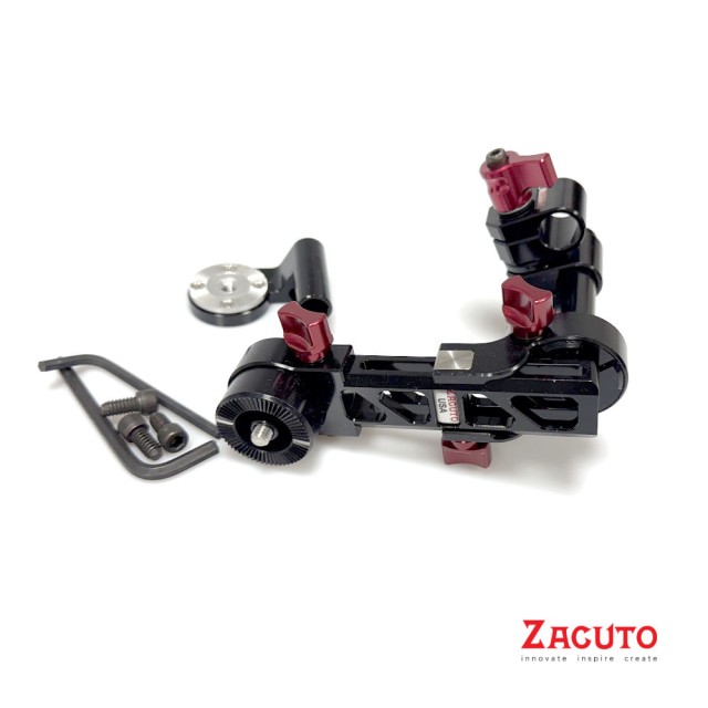Es wurde für die Befestigung an der FS5-Oberplatte entwickelt, lässt viel Platz am Objektiv zum Fokussieren und ist mit den breitesten Objektiven kompatibel. Es lässt sich leicht mit einer Hand einstellen, während Sie das Rig auf der Schulter tragen. Das Axis Mini verfügt über eine umfangreiche Gelenkigkeit für den Einsatz in einer Vielzahl von Positionen, sowohl auf der Schulter in einem Next Generation Recoil als auch in der Stativ-Betriebsposition. Es ist sehr klein und lässt sich schnell anbringen und abnehmen.