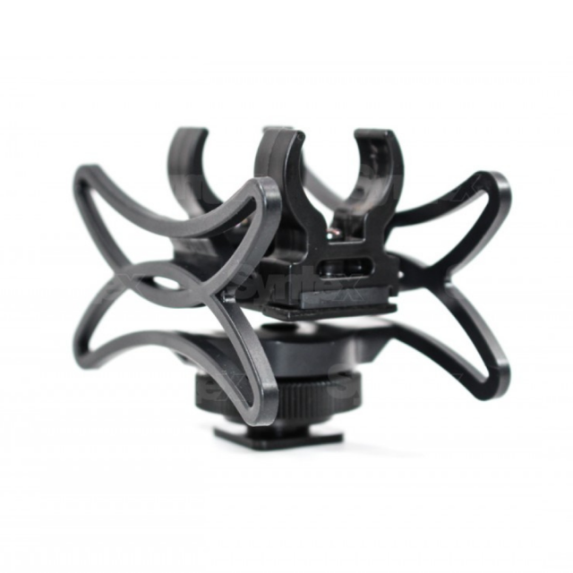 Neben den Azden-Modellen ist der Halter auch mit Mikrofonen anderer Hersteller kompatibel, die einen Gehäusedurchmesser zwischen 18 und 22 mm haben. Zu diesem Zweck liefert der Hersteller im Preis des Halters zwei Sätze von Klammern mit, aber es wird empfohlen, sie nicht für Gewehrmikrofone mit einer Länge von mehr als 300 mm zu verwenden. Neben dem Standard-Blitzanschluss bietet der Halter auch ein 1/4"-20-Gewinde zur Befestigung auf Stativen, Mikrofonstangen usw