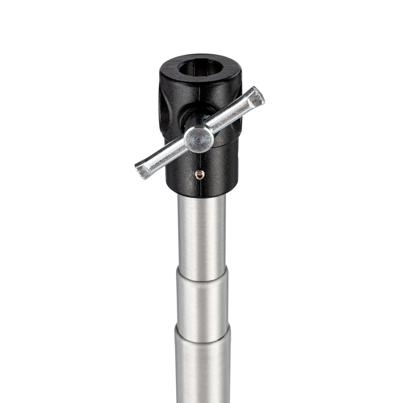 Der Manfrotto 272 ist außerdem benutzerfreundlich. Dieser Ständer wurde für die Verwendung mit einer Reihe von Aufsätzen entwickelt und bietet Ihnen somit völlige Flexibilität, Ihre Ausrüstung ganz nach Ihren Bedürfnissen zusammenzustellen. Dank der standardmäßigen 9,5-mm-Befestigung oben können Sie ihn mit allem kombinieren, was Sie benötigen, und er passt auf eine Vielzahl von Rohren und Säulen mit einem Durchmesser von 2 cm bis 9,45 cm. Außerdem lässt er sich von 112 cm auf 298 cm ausziehen, sodass Sie sowohl in großen als auch in kleinen Räumen arbeiten können.