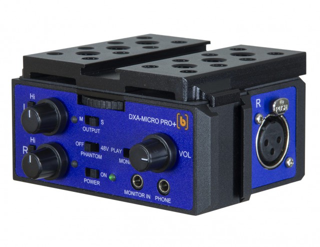 Der Beachtek DXA-MICRO-PRO PLUS ist ein aktiver Audioadapter, der Kameraleuten und Kameramännern, die digitale Spiegelreflexkameras oder Camcorder in der Fernseh- und Filmproduktion verwenden, vielseitige Anschlussmöglichkeiten und eine einfache Einrichtung bietet. Er ermöglicht den gleichzeitigen Anschluss von externen Mikrofonen und Kopfhörern, um den Anschluss an die Kamera zu vereinfachen. Die mitgelieferte abnehmbare Käseplatte ermöglicht eine stabile und einfache Montage von Zubehör. Der interne LiPo-Akku hält das DXA-MICRO-PRO PLUS bis zu zehn Stunden in Betrieb; das Aufladen und die externe Stromversorgung ist über den Micro-USB-Anschluss möglich.