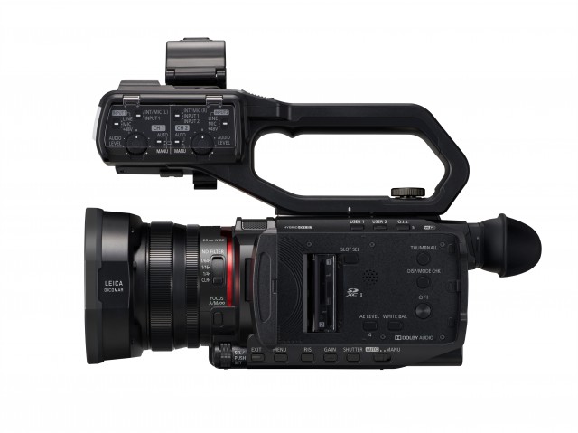 Jeder der beiden Kanäle verfügt über eine +48-V-Phantomspeisung und einen MIC/LINE-Pegelschalter mit Verstärkungseinstellung. Unterstützt werden lineare 24-Bit-PCM-Aufnahmen (MOV), 16-Bit-AAC-Aufnahmen (MP4) und hochwertige Zweikanal-Dolby-Audio-Aufnahmen (AVCHD). Für den HC-X1500 ist ein Griff als optionales Zubehör erhältlich.