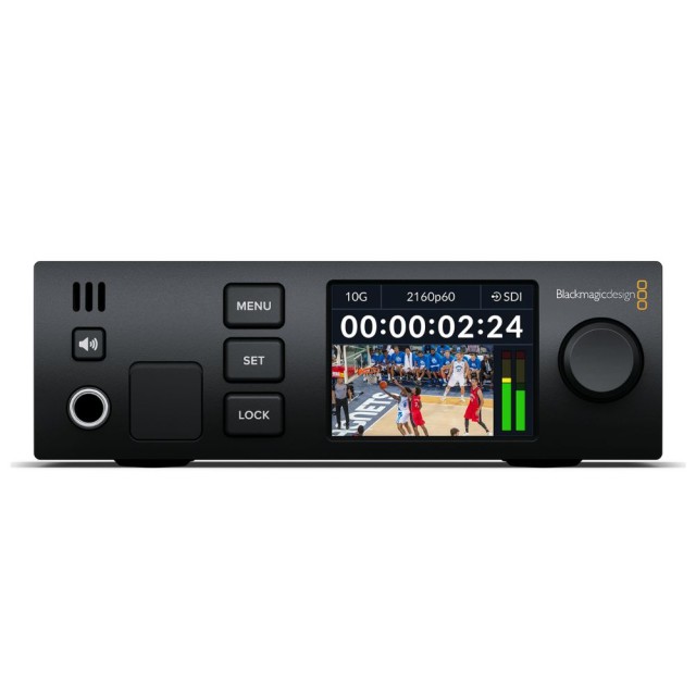 Der Blackmagic 2110 IP UpDownCross 12G ist ein High-End-Standardkonverter für die Live-Produktion und den Rundfunk. Er hat ein schlankes Design mit LCD-Display, eingebautem Lautsprecher und Kopfhörerausgang. Das LCD-Display bietet auch Menüs zur Einstellung des Videostandards.