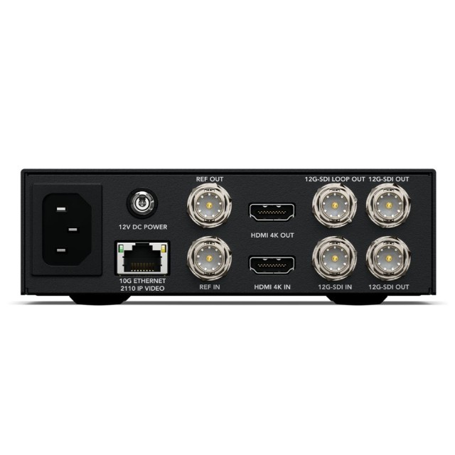 Das Produkt ist mit den neuesten 12G-SDI-Videoanschlüssen ausgestattet. Das bedeutet, dass Sie mit einem einzigen Gerät sowohl herkömmliche Broadcast-Ausrüstung über SDI als auch moderne Broadcast-Systeme, die auf der SMPTE-2110 IP-Technologie basieren, anschließen können. 12G-SDI ist Multirate, was bedeutet, dass ein einziges BNC-Kabel das Signal von jedem Gerät sowohl in HD- als auch in Ultra HD-Formaten übertragen kann. Unterstützt werden: 720p HD bei 720p50 und 59.94p; 1080i HD (Interlaced-Signal) bei 1080i50 und 1080i59.94; 1080p HD bei 23.98, 24, 25, 29.97, 30, 50, 59.94 und 60p; Ultra HD (2160p) in allen TV-Standards: 23.98, 24, 25, 29.97, 50, 59.94 und 60p.