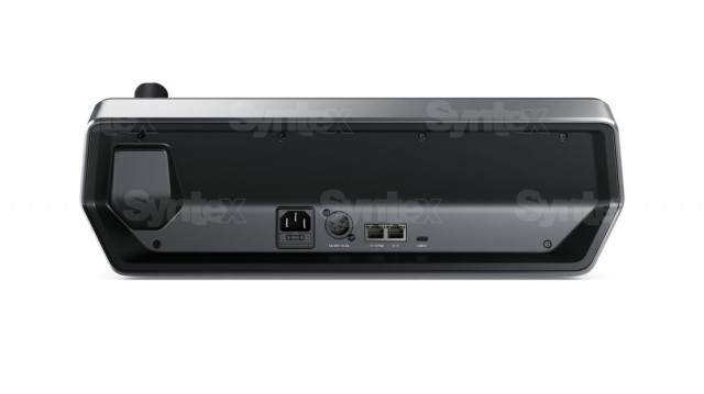 Der obere Teil des ATEM 1 M/E Advanced Panel ist mit einem großen 5"-LCD-Display mit vier Tasten und ebenso vielen Drehknöpfen ausgestattet, der linke Teil ist mit Funktionstasten versehen, während der rechte Teil eine numerische Tastatur und einen Joystick enthält. Das Farbdisplay bietet eine leicht ablesbare visuelle Anzeige des Inhalts des Vorschau- und des Programmbusses. Außerdem ändert sich sein Inhalt automatisch je nach aktueller Funktion, um Effektsteuerungen, Interleaver, Grafiken usw. anzuzeigen