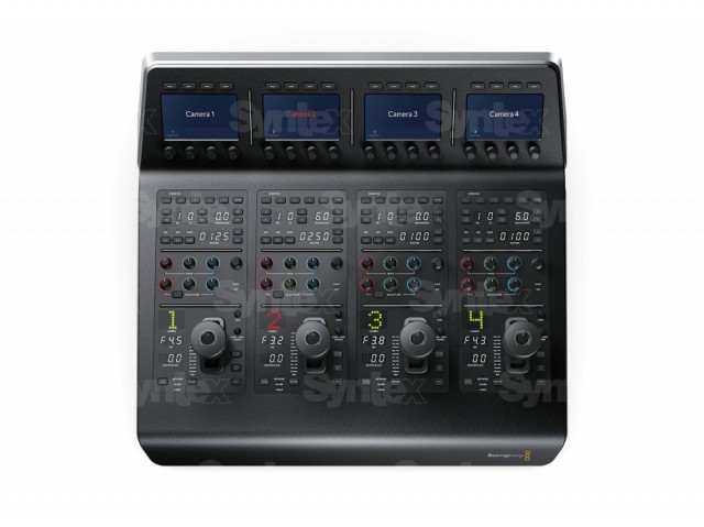 Neue Steuerkonsole für Blackmagic Design URSA Broadcast, URSA Mini, Blackmagic Studio Camera oder Blackmagic Micro Studio Camera. Steuern Sie bis zu vier Kameras gleichzeitig, einschließlich Blende, Verschlusszeit, Weißabgleich, Verstärkung, Schwarzwert, RGB-Korrekturen usw.