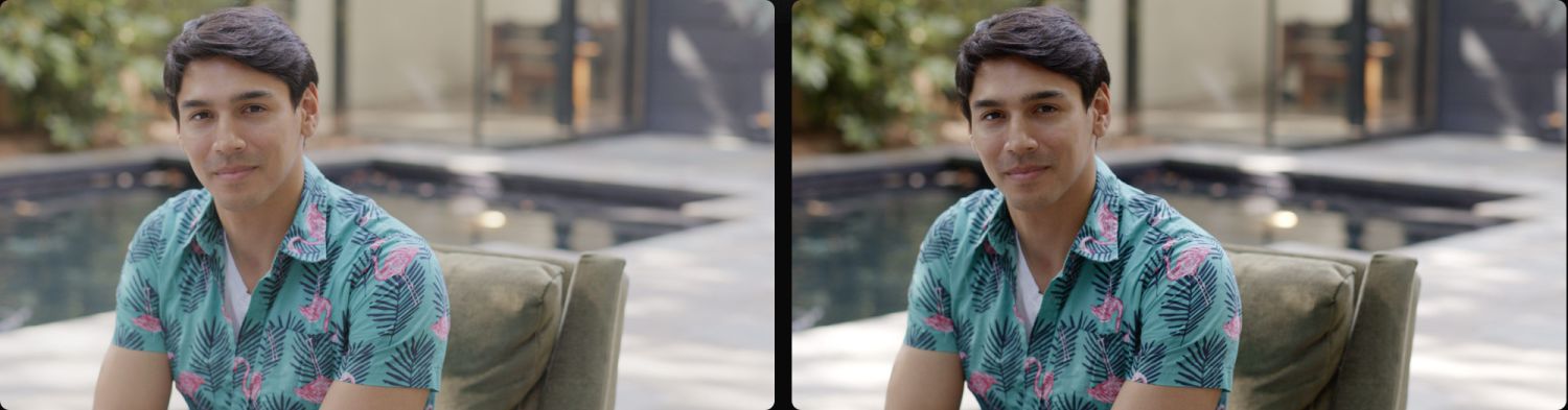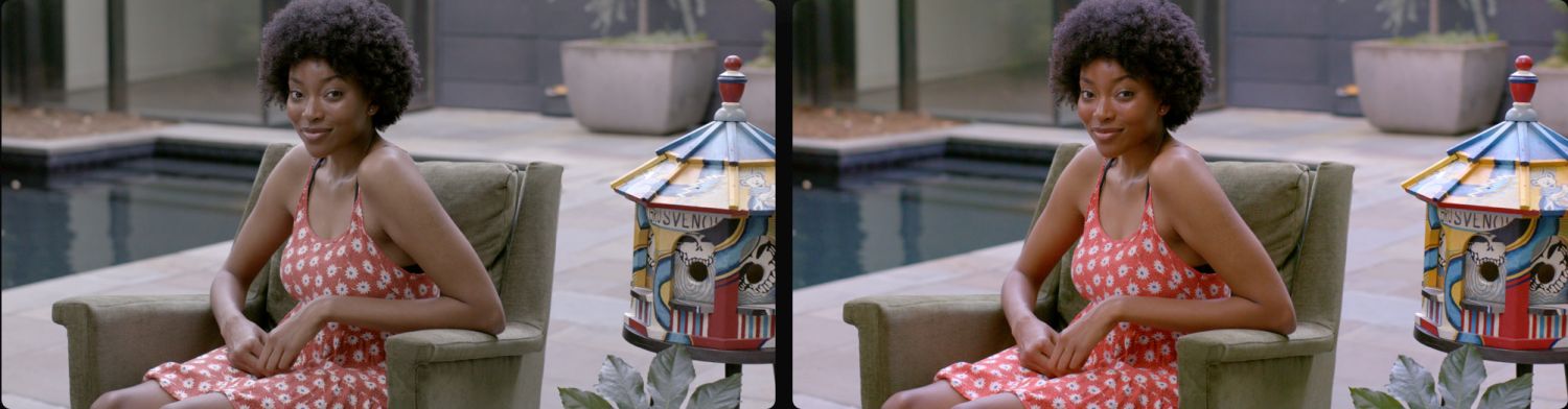 Durch Erhöhen oder Verringern der Mitteltondetails wird der Kontrast der Randdetails in einem Bild verändert. Die Anpassung der Mitteltondetails verändert die Wahrnehmung von Schärfe und Definition. Sie können damit die Bartstoppeln eines Schauspielers betonen, eine Szene schärfer aussehen lassen oder die Haut für Beauty-Arbeiten leicht defokussieren.