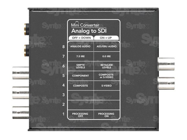 Das Produkt bietet alle Funktionen, die für die Umwandlung von analogen SD/HD-Komponentensignalen inSDI erforderlich sind, einschließlich der Unterstützung von PAL- und NTSC-Standards oder der Unterstützung von symmetrischem AES/EBU-Audio und analogem Audioausgang. Der Mini Converter SDI to Analog ermöglicht den Anschluss von Betacam SP oder VHS Video und analogen Monitoren. Funktionen für die Abwärtskonvertierung von HD-SDI-Video in SD sind ebenfalls enthalten. SD/HD-Version ohne 4K-Unterstützung zu einem reduzierten Preis!