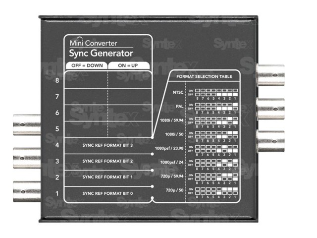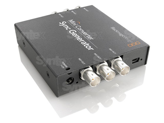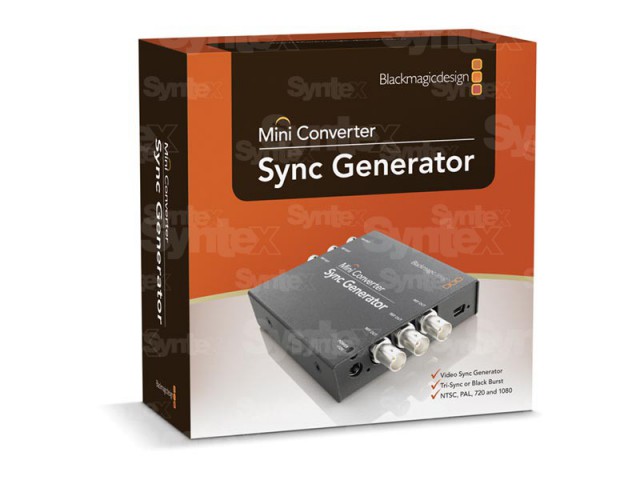 Der Mini Converter Sync Generator verfügt über sechs quarzstabilisierte Referenzausgänge. Sie ermöglicht die einfache Synchronisierung der Video-Hardware Ihres Studios mit den Standards Tri-Sync (HD) oder Blackburst (SD). Das ideale Gerät für kleinere Studios oder die Arbeit vor Ort!