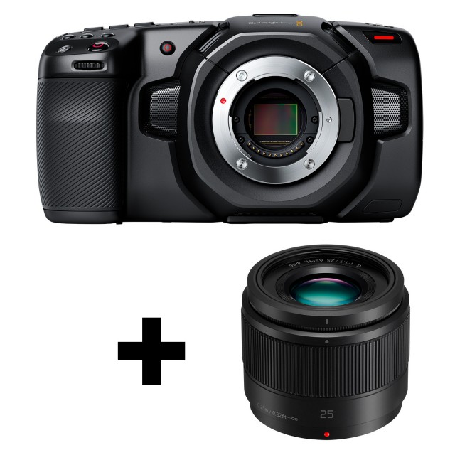 Ermäßigtes Set aus Blackmagic Design Pocket Cinema Camera 4K und Panasonic Lumix G 25mm / f1.7 Asph.Objektiv in schwarzer Ausführung. Dieses MFT-Objektiv mit einer Festbrennweite von 25 mm (50 mm Kleinbildäquivalent) bietet eine hohe Blendenöffnung von 1:1,7, eine Filtergröße von 46 mm und ein geringes Gewicht von 125 g. Es wurde mit den TIPA Awards 2016 ausgezeichnet!