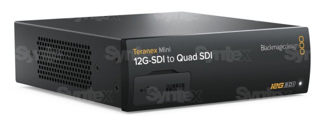 Das Teranex Mini 12G-SDI to Quad SDI Produkt konvertiert 12G-SDI Signale in Quad-Link SDI für eine nahtlose Koexistenz der neuesten 12G-SDI Ultra HD Technologie an Arbeitsplätzen, die auch Ultra HD Equipment mit Quad-Link SDI verwenden. Bei diesem Modell kann das Ultra HD-SDI-Signal auch auf vier HD-SDI-Ausgänge umgewandelt werden, z. B. für herkömmliche HD-Displays, die in Overhead-Anlagen Displaywände bilden.