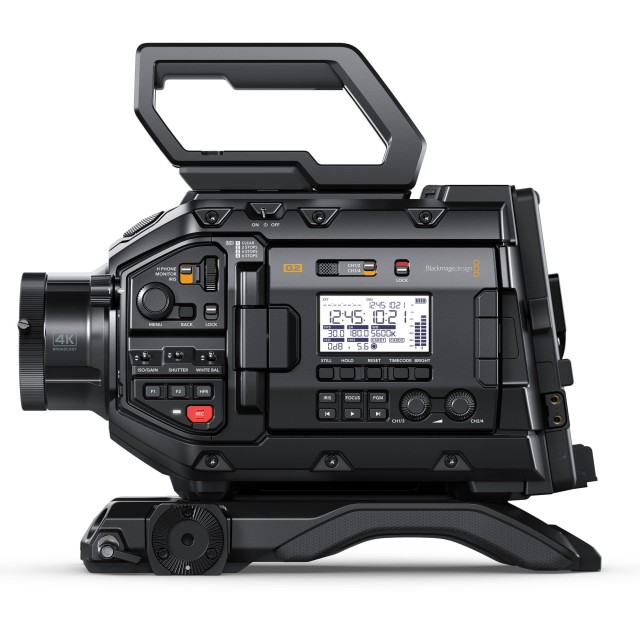 Die URSA Broadcast G2-Kamera wird mit einer Schulterstütze, einer V-Lock-Akkuplatte, einem B4/EF-Objektivanschluss und einem oberen Griff geliefert, sodass dieses Zubehör nicht separat erworben werden muss. Optional kann das Gerät mit einem Blackmagic URSA Viewfinder oder Blackmagic URSA Studio Viewfinder, einem Blackmagic Design Studio Converter zum Anschluss der Kamera über eine SMPTE Fiber Optic Schnittstelle oder einem externen URSA Mini Recorder zur Aufzeichnung von Videos auf SSDs ausgestattet werden.