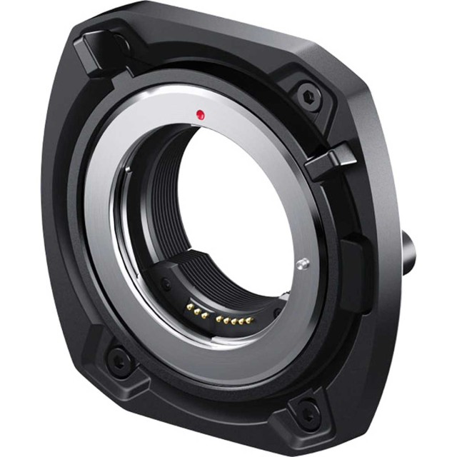 Auswechselbarer, verriegelbarer EF-Anschluss, mit dem Sie EF-kompatible Foto- und Filmobjektive mit Ihrer URSA Cine-Kamera verwenden können. Verfügbar ab 4/2024.