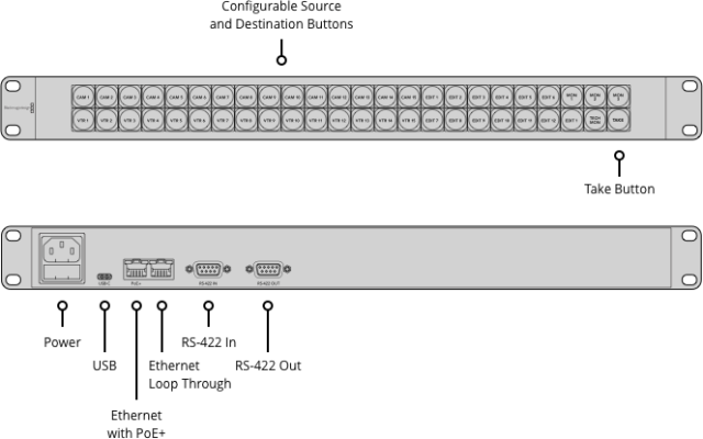 Videohub Smart Control Pro ist ein kompaktes (1U Höhe) Videohub-Router-Bedienfeld, das über Ethernet angeschlossen wird. Er bietet 48 vollständig konfigurierbare Tasten, mit denen Sie schnell zwischen den Videoquellen wechseln können. Es kann für einzelne oder mehrere Ziele konfiguriert werden, um das Video-Routing für mehrere Monitore, Videorecorder usw. zu steuern. 11/2019.