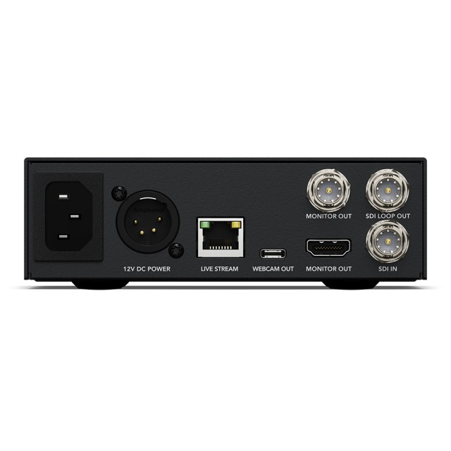 Das Gerät verfügt über einen Ausgang als USB-Webcam, einen standardkonvertierten 12G-SDI-Eingang und einen Ausgang für die Stream-Überwachung. Zusätzlich können Sie über Ethernet über das Internet streamen oder ein Telefon mit 5G oder 4G anschließen, um die Vorteile mobiler Daten und der neuen Blackmagic Cloud-Streaming-Funktionen zu nutzen.