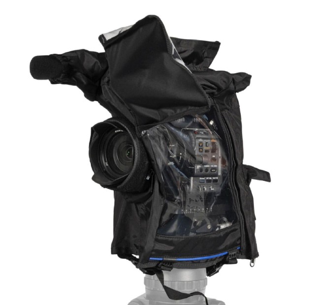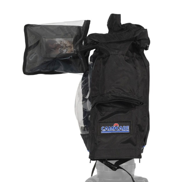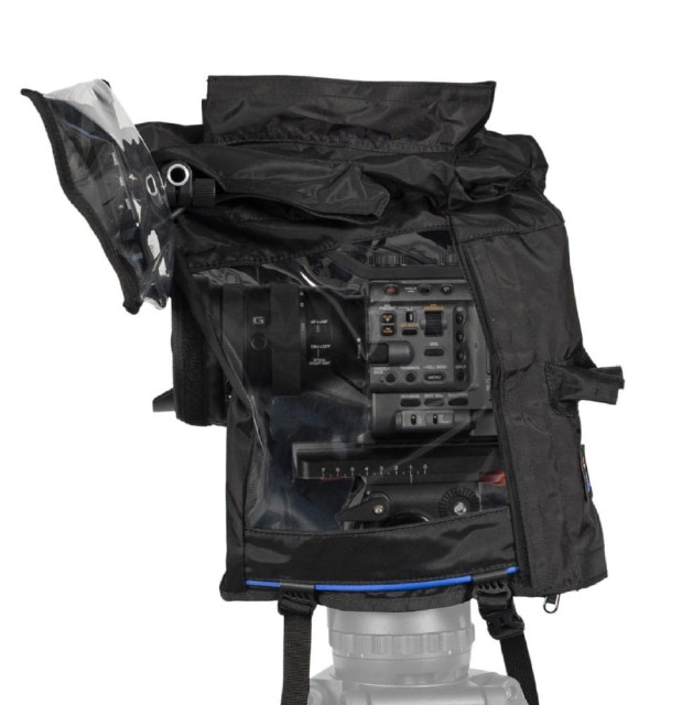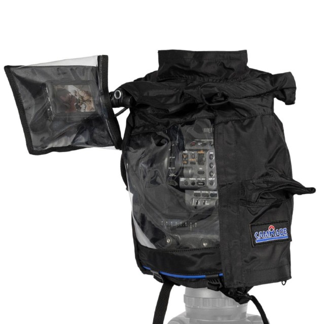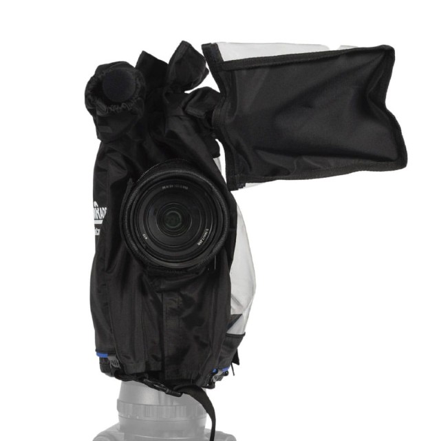 Regenschutz mit Abdeckung für den Suchermonitor und transparenten Sichtfenstern für kleine Cine- und Vollformatkameras