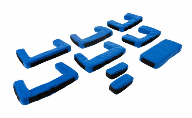 Dank der Vielfalt an Bumpern (9), die mit dieser Tasche geliefert werden, haben Sie maximale Flexibilität bei der Auswahl der Geräte sowie Bewegungsfreiheit während des Drehs. Wählen Sie die richtige Kombination von Bumpern, um Ihr Gerät zu sichern, und befestigen Sie den elastischen Gurt, um alles sicher an seinem Platz zu halten.