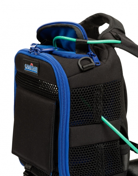 Die Tasche besteht aus abriebfestem Cordura®-Gewebe in Kombination mit starkem Mesh-Gewebe, damit die vom Gerät erzeugte Wärme entweichen kann. Öffnungen mit Klettverschlüssen ermöglichen es, die Kabel von einem Ende der Tasche zum anderen zu führen.