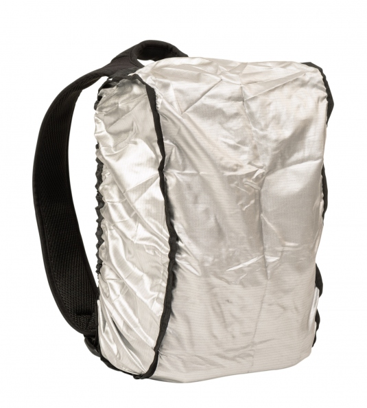 An der Unterseite der Tasche ist ein spezielles, bis zu 10 cm ausziehbares Fach für einen Akku und/oder Kabel und Zubehör angebracht. In einem abgeschlossenen Fach mit Reißverschluss befinden sich die eingebaute Regenhülle und die Sonnenschutzhülle.