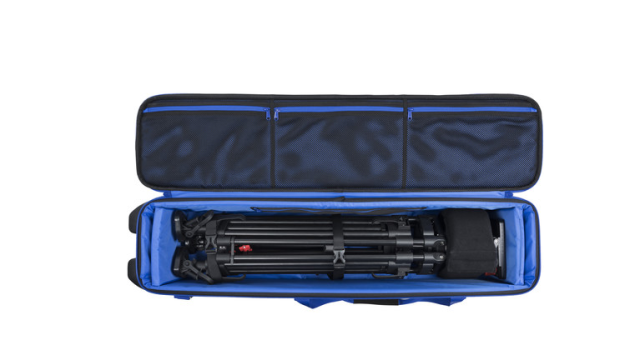 Der Innenraum ist durchdacht gestaltet und verfügt über zwei Stoßfänger zur Sicherung der Stativköpfe sowie mehrere große Reißverschlusstaschen für die übersichtliche Aufbewahrung von Zubehör. Ein Netzkorb kann an den Stativbeinen befestigt werden, um unterwegs Zugriff auf kleine Werkzeuge zu haben. An der Außenseite befindet sich eine durchsichtige ID-Tasche zur einfachen Identifizierung. Für zusätzlichen Komfort auf Reisen ist ein gepolsterter Schultergurt aus Wildleder im Lieferumfang enthalten. Dank strapazierfähiger YKK®-Reißverschlüsse und Liebe zum Detail ist die tripodBag Traveler ein zuverlässiger Begleiter für professionelle Crews und sorgt dafür, dass Ihre Ausrüstung sicher und einsatzbereit ankommt.