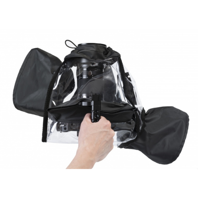 Ein Regenmantel, der speziell auf die Blackmagic Pocket Cinema Camera 4K und 6K zugeschnitten ist, um sie vor Regen, Feuchtigkeit und Staub zu schützen.