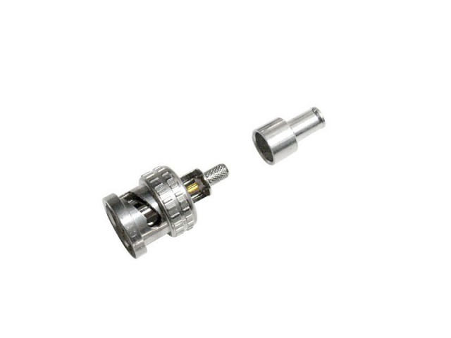 DerCanare BCP-C1 ist ein 75-Ohm-BNC (M)-Crimpstecker (gerader Typ) mit einem fliegenden Mittelstift. Geeignet fürCanare L-1,5C2VS Kabel.