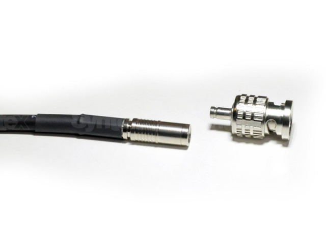 CanareBCP-DCJ ist ein 75 Ohm Mini DIN 1.0/2.3 auf BNC (Stecker) Adapter (gerade Ausführung)