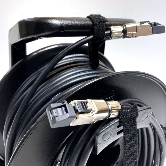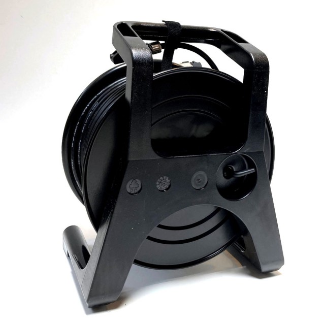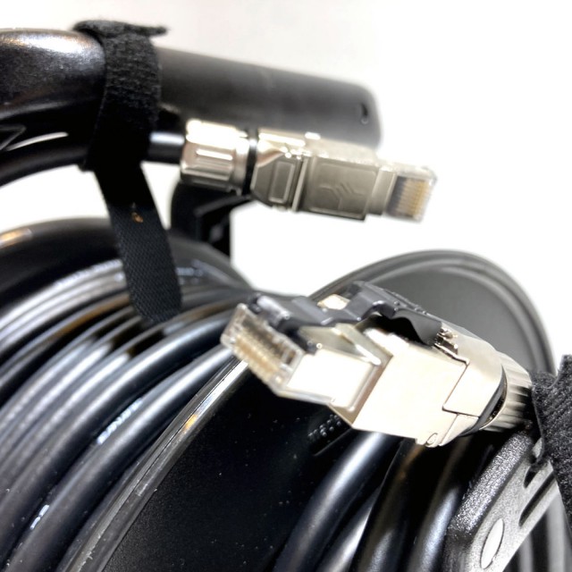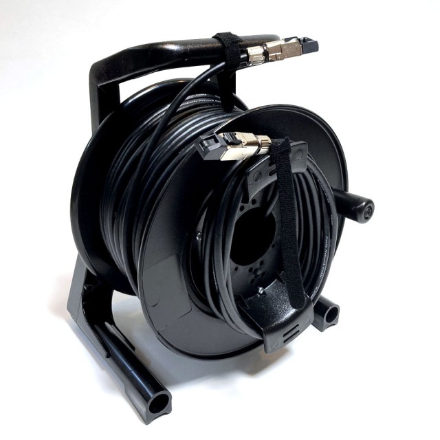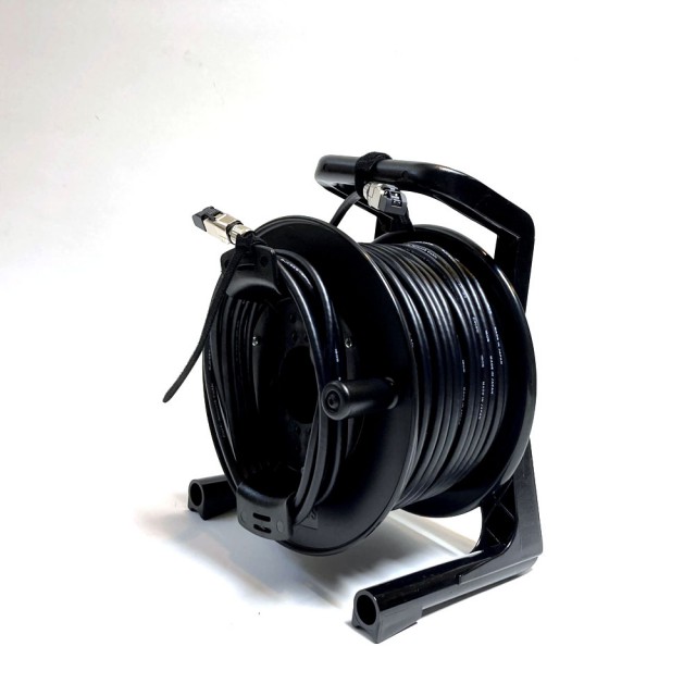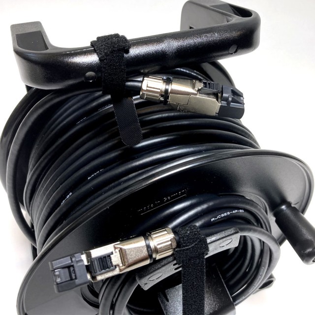 Flexibles und extra starkes Canare RJC5ES-4P-BS CAT5e STP-Netzwerkkabel mit Außendurchmesser 6,7 mm mit Telegartner RJ45-Anschlüssen, gewickelt auf Schill-Kabeltrommel. Ethernet-Kabel werden nicht nur für Computernetzwerke verwendet, sondern in letzter Zeit auch für digitale Audionetzwerke, Netzwerkkameras und HDBaseT-Übertragungen. Die Gesamtlänge des Kabels…