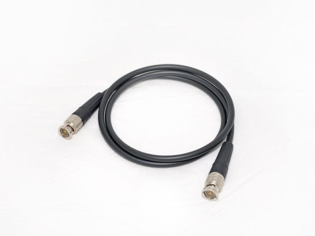 Canare L-3C2VS konfektioniertes und kundenspezifisches flexibles SDI-Koaxialkabel mit wählbarer Kabellänge und -farbe sowie einer Auswahl an verschiedenen BNC-Steckern und Kappenfarben. Der Kabeldurchmesser beträgt 5,5 mm. Die Gesamtlänge des Kabels ist einschließlich der Stecker angegeben.