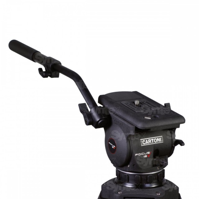 Set aus Focus 12 HF1200 Kopf, T627 Aluminiumstativ (3 Rohre, 1 Sektion), S731/QR Mittelstrebe, AT857 Gummifüße und C928 Tragetasche.